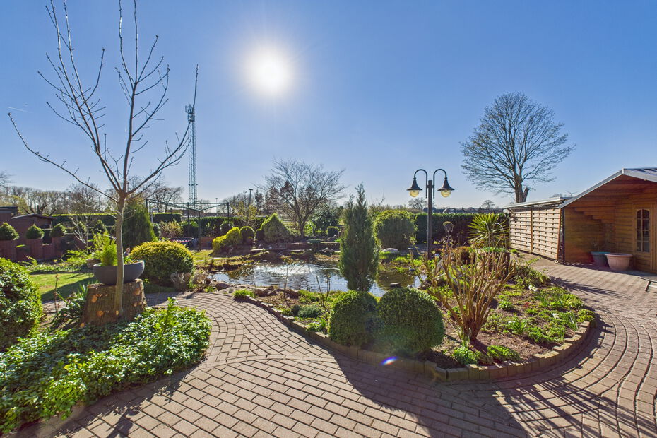 Grüne Wohlfühloase: Einfamilienhaus mit Teich und großzügigem Grundstück in Drebber