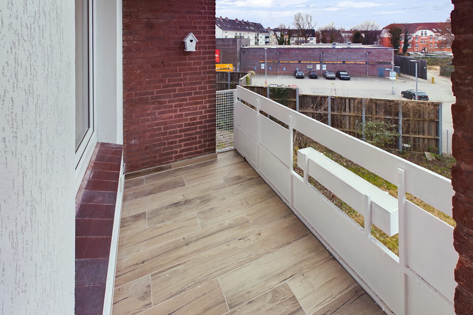 - - Balkon mit Balkonbelag aus hochwertiger und witterungsbeständiger Fliese