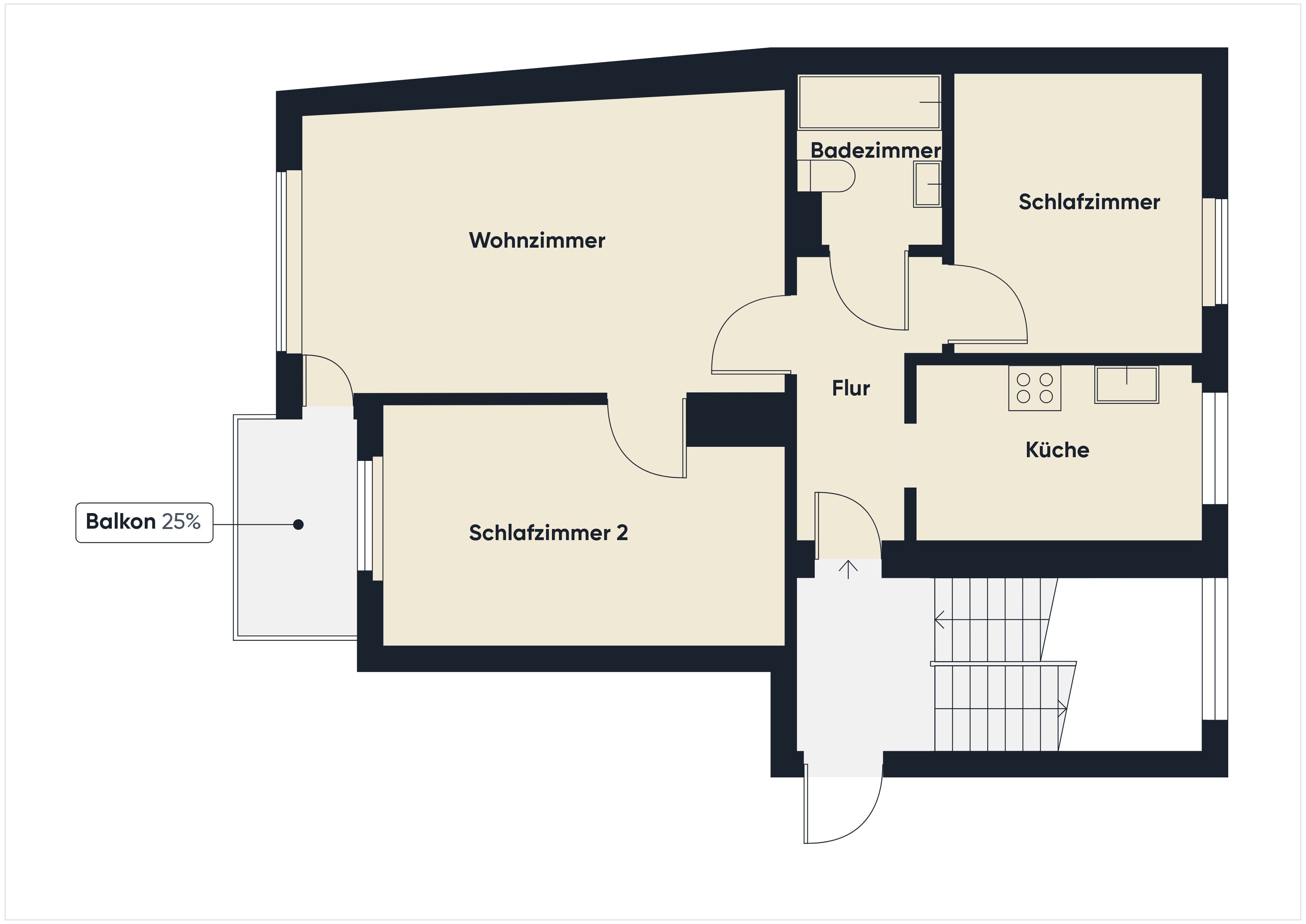 - Grundsanierte 3-Zimmer-Wohnung im 2. Obergeschoss eines gepflegten Mehrfamilienhauses mit vier Etagen - Die 2024 komplett modernisierte Wohnung erstreckt sich auf ca. 56 m² - Erstbezug nach Sanierung - Geräumiger Flur mit Zugang zu allen Räumen - Helles und sehr gemütliches Wohnzimmer mit großen Fenstern und Zugang zum Balkon - Separate, mit hochwertiger Einbauküche ausgestattete Küche mit Tageslichteinfall - Modern gefliestes Badezimmer mit Badewanne - Geräumig und ruhig gelegenes Schlafzimmer - Weiteres Zimmer, nutzbar als Kinderzimmer oder Arbeitszimmer - Keller- und Dachbodenraum für weiteren praktischen Stauraum - Die Wohnung bietet sich sowohl für Eigennutzer, als auch für private sowie gewerbliche Kapitalanleger an Überzeugen Sie sich selbst im 360° Rundgang: https://tour.giraffe360.com/96c51f6a947145a8ab2528cb40eedacdAusstattung