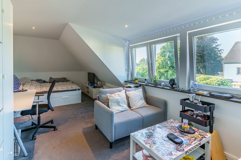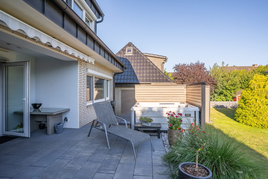 - Repräsentatives Einfamilienhaus auf einem ca. 1.160 m² großen Grundstück in idyllisch ruhiger und grüner Lage von Hamburg-Bramfeld - Solide Massivbauweise aus 1975, in den letzten Jahren umfassend modernisiert und technisch auf den neuesten Stand gebracht - Ca. 290 m² Wohn- und Nutzfläche, verteilt auf acht Zimmer, drei hochwertige Bäder, ein Gäste-WC sowie ein wohnlich ausgebauter Spitzboden - Großzügiger, lichtdurchfluteter Wohn- und Essbereich mit offenem Grundriss, großen Fensterfronten und traumhaftem Blick in den liebevoll gestalteten Garten - Edler Designboden in moderner Holzoptik im Erdgeschoss sorgt für eine warme und stilvolle Wohnatmosphäre - Hochwertige, weiße Hochglanz-Einbauküche – ideal für gesellige Kochabende mit Familie und Freunden - Sonnenterrasse (ca. 35 m²) mit beheiztem Whirlpool, ganztägiger Besonnung und einer elektrisch ausfahrbaren Markise - Im Obergeschoss befinden sich drei gemütliche Schlafzimmer sowie ein Zugang zur überdachten Loggia – perfekt für entspannte Stunden im Freien - Drei modernisierte Design-Bäder mit bodengleichen Duschen, stilvollen Armaturen und geschmackvoller Ausstattung - Besonderes Extra: Wohnlich ausgebaute Garage mit separatem Zugang, ausgestattet mit Wohnzimmer, Bar, Bad und Schlafzimmer im Obergeschoss – ideal als Gästebereich oder für heranwachsende Kinder - Eigene kleine Terrasse inklusive Zukunftssichere Haustechnik: vollständige Erneuerung der Elektroanlage, 10 kWp PV-Anlage mit BYD-Speicher und Fronius-Wechselrichter Premium Wärmepumpe (Viessmann, Baujahr 2025) sorgt für nachhaltigen und kosteneffizienten Wohnkomfort - Hochwertige Fenster und Türen mit programmierbaren Jalousien - Drei neu gedämmte Satteldächer, gedeckt mit eleganten, anthrazitfarbenen, matt lasierten Dachpfannen - Großzügiger Vorhof mit Platz für mindestens fünf Fahrzeuge - Attraktive Ausbaureserve: genehmigter Bauantrag samt statischer Berechnung zur Erweiterung um 2–4 zusätzliche Zimmer (ca. 60 m²)Ausstattung