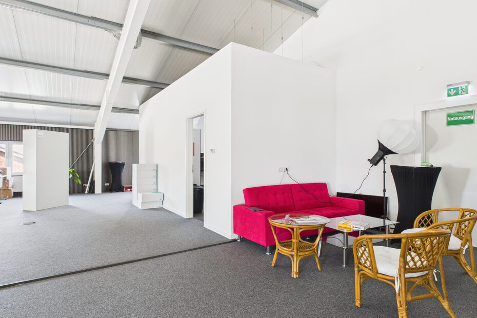- Großzügige, weitläufige Fläche mit moderner, offener Raumstruktur - Lage über einer Kfz-Werkstatt, separater Zugang vorhanden - Gesamtfläche ca. 303 m², davon sind ca. 257 m² reine Bürofläche - Hohe Decken mit sichtbaren Stahlträgern, sorgen für ein helles und luftiges Ambiente - Flexible Raumaufteilung – ideal für Großraumbüro oder individuelle Team-Bereiche - Platz für ca. 40 Arbeitsplätze - Große Fensterflächen und gute Belichtung für ein angenehmes Arbeitsumfeld - Küche mit Einbauzeile, Spüle, Herd und Stauraum – ideal für Pausenversorgung - Getrennte Sanitäranlagen (Damen/Herren) in gepflegtem Zustand - Teppichboden in der gesamten Bürofläche, sorgt für angenehme Akustik - EDV-/Netzwerkverkabelung vorhanden, geeignet für moderne Büro-Infrastruktur - Glasfaseranschluss für optimale Internetgeschwindigkeit - Klimatisierung und Heizung vorhanden - Loungebereich mit Sitzmöglichkeiten für Kundengespräche oder die Mittagspause vorhanden - Ein überdachter Stellplatz mit Ladestation, sowie Platz für zwei weitere Pkw's vorhanden - Optional besteht die Möglichkeit, weitere Stellplätze auf der Rückseite des Gebäudes anzumietenAusstattung
